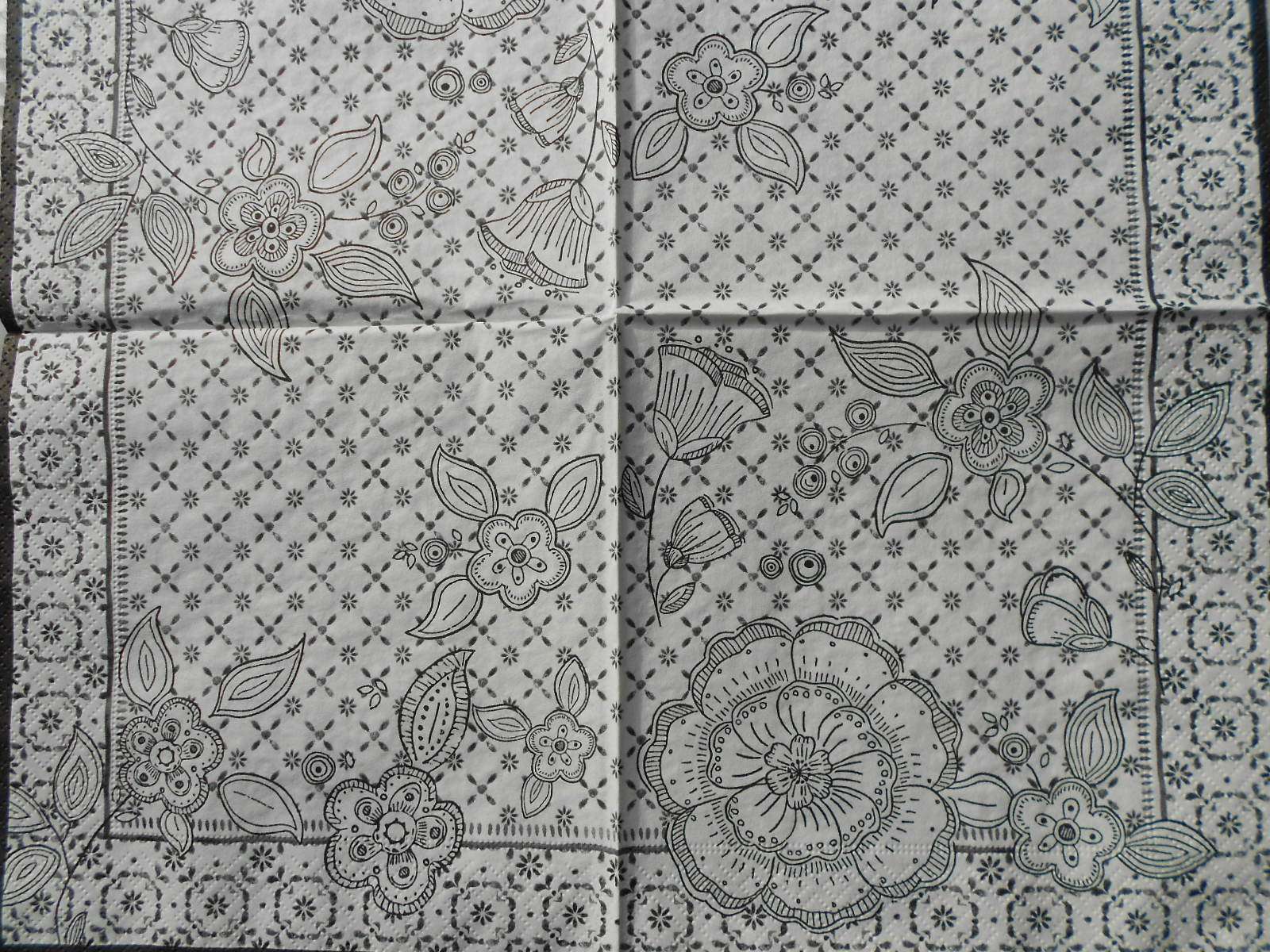 Black & white floral pattern decoupage paper napkins
