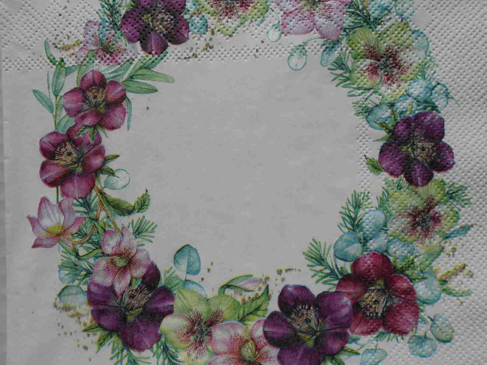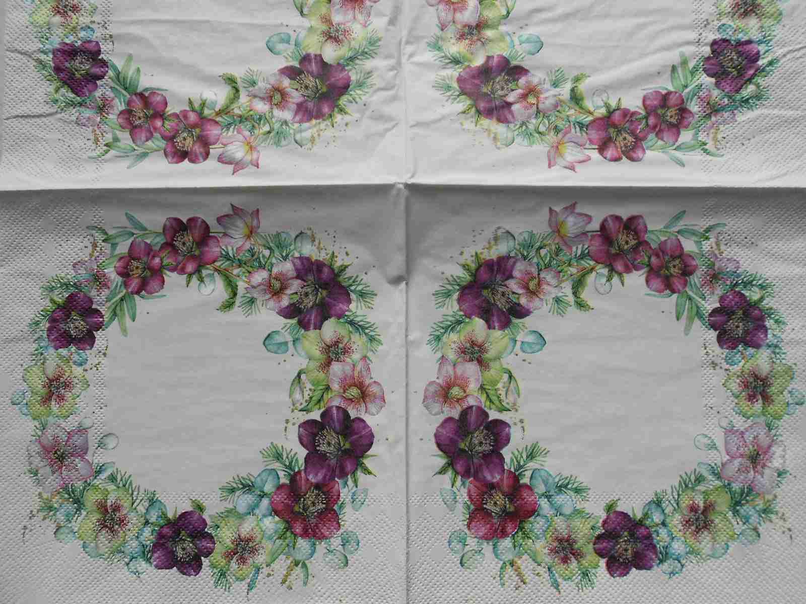 Christmas rose wreath decoupage paper napkins. Size Lunch (33x33cm or 13 x 13 inches), 3 ply, quantity: 1 sheet