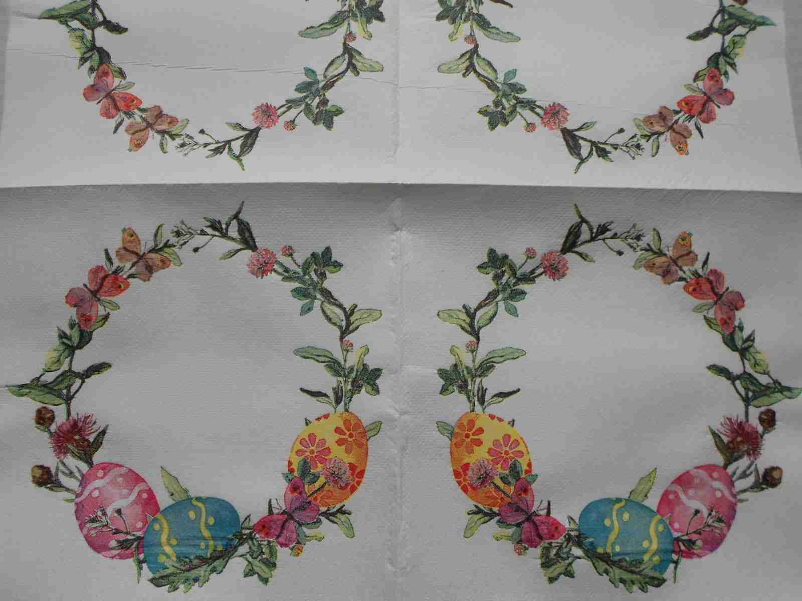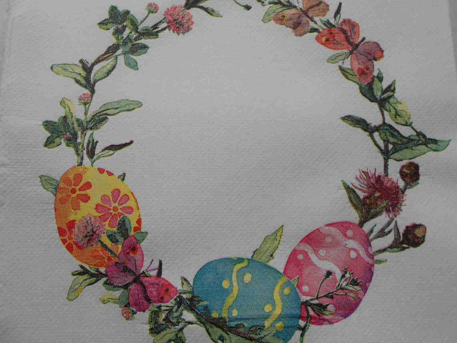 Easter wreath 3 eggs paper napkins for decoupage. Size Lunch (33x33cm or 13 x 13 inches), 2 ply, quantity: 1 sheet
