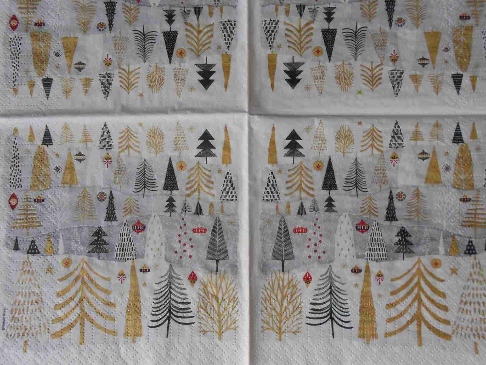 Forest gold black Christmas trees decoupage napkins