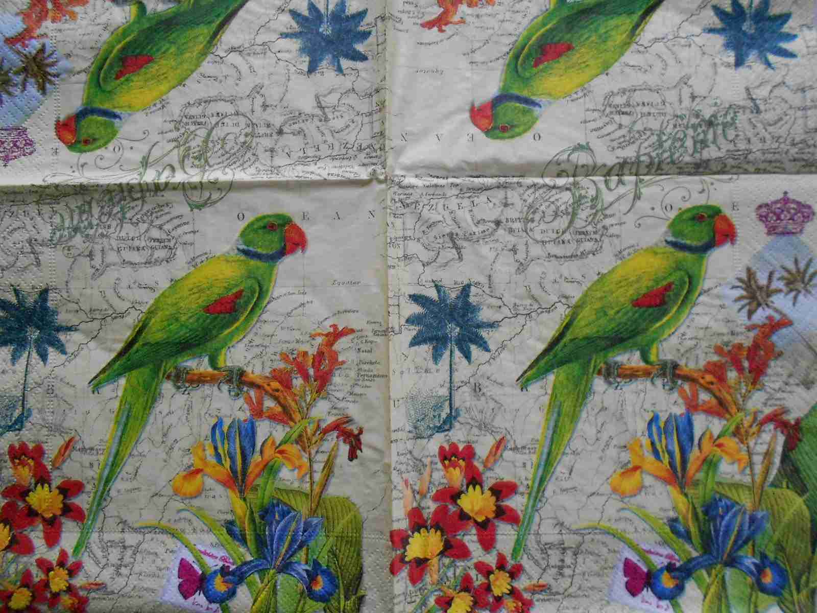 Green parrot decoupage paper napkins Green parrot decoupage paper napkins