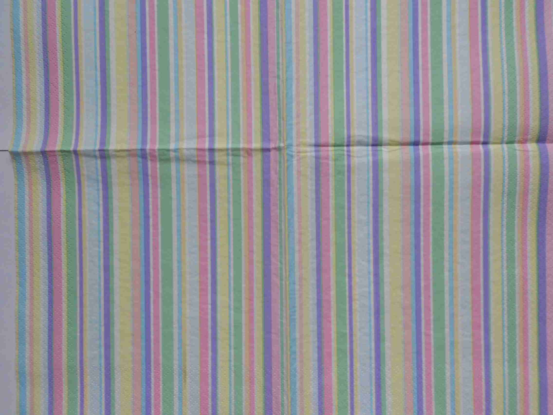 Pastel pink green baby blue stripes wallpaper style decoupage paper napkins. Size Lunch (33x33cm or 13 x 13 inches), 3 ply, quantity: 1 sheet