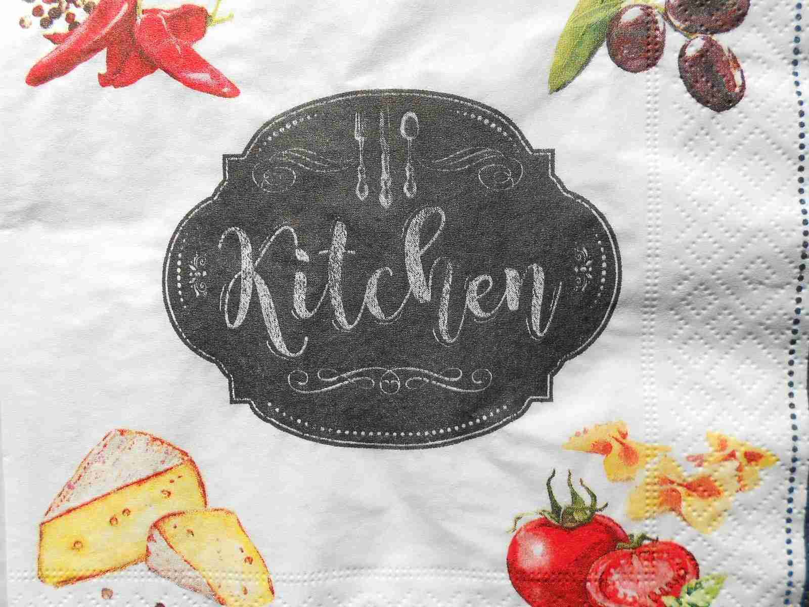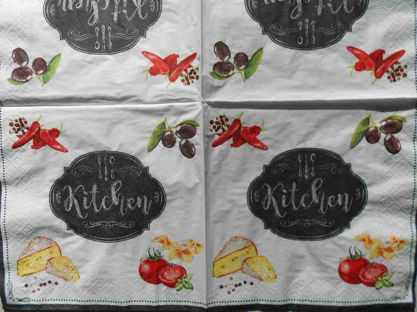 Pepper cheese tomatoes olives Kitchen decoupage paper napkins. Size Lunch (33x33cm or 13 x 13 inches), 3 ply, quantity: 1 sheet