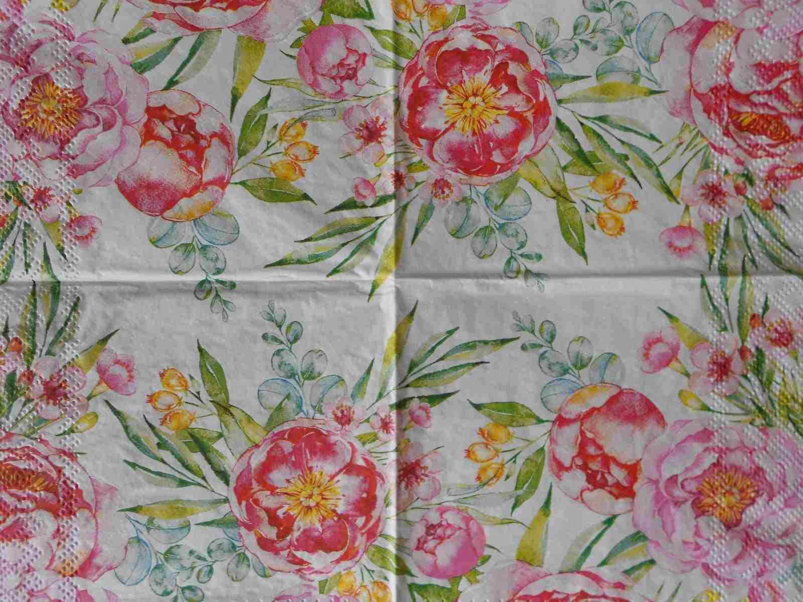 Pink red peonies decoupage napkins. Size Cocktail (25x25cm or 10″x10″), 3 ply, quantity: 1 sheet